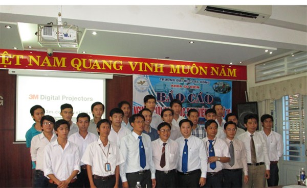Sáng nay ngày 05/12/2012 khoa Cơ Điện tổ chức báo cáo nghiên cứu khoa học sinh viên cấp khoa, buổi báo cáo có sự tham dự của thầy PGS.TS. Nguyễn Ngọc Phương Trưởng Khoa Cơ Điện - Chủ tịch hội đồng, ThS. Lâm Thành Hiển Phó hiệu trưởng nhà trường, cùng toàn thể giáo viên trong khoa. Hội nghị nghiên cứu khoa học cấp Khoa năm nay có 14 đề tài tham gia báo cáo thuộc hai chuyên ngành  Cơ Điện Tử và Điện công Nghiệp.