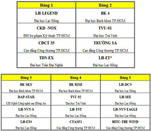 Kết thúc vòng 1, Robocon Lạc Hồng có 8 đội tuyển lọt vào vòng hai, 5 vị trí nhất bảng và 3 nhì bảng. Các tấm vé còn lại gồm có các trường: 3 của Đại học Bách khoa, 1 của Sư phạm Kỹ thuật, 4 cho Cao đẳng công thương thành phố Hồ Chí Minh, 2 cho Đại học Trà Vinh, 1 cho Đại học Trần Đại Nghĩa, 1 cho Cao đẳng công nghệ cao Đồng An