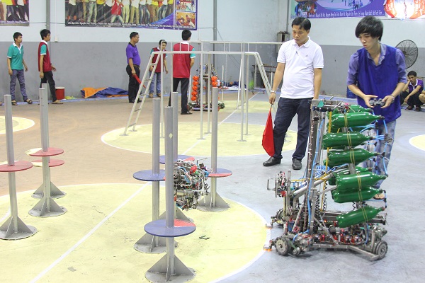Chiều nay, là vòng thi test robot trước khi gửi sản phẩm ra Nha Trang theo yêu cầu tập kết của BTC. Tính đến thời điểm này, toàn đội tuyển không còn xa lạ gì với chủ đề và luật thi đấu. Thế nhưng 7 đội tuyển gồm: LH-NVN; LH-DCN; LH-S; LH-FIRE; LH-LIGHT; LH-ZUES và LH-Q luôn rèn luyện tinh thần thi đấu, nắm bắt cơ hội của cuộc thi cọ xát do nhà trường tổ chức. Qua đó, giúp từng đội tự kiểm tra phong độ và tốc độ thi đấu của riêng mình. Qua buổi thi hôm nay, cho thấy sức người và sức máy đã làm việc cật lực những ngày qua, nhưng vẫn đảm bảo sức bền khi phải thi đấu liên tục.