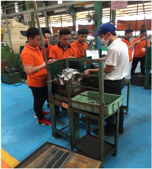Ở đây, sinh viên tiếp cận và quan sát công nhân tham gia các công đoạn sản xuất, mà sau này trong quá trình thực tập sinh viên cũng sẽ làm những công việc thực tế mà công nhân đang làm.