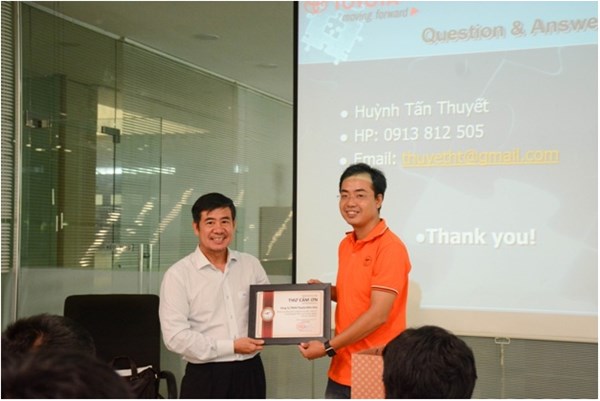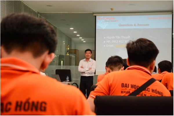 Giám Đốc công ty TNHH Toyota Biên Hòa Ông Huỳnh Tấn Thuyết đang chia sẻ thông tin đến các bạn sinh viên