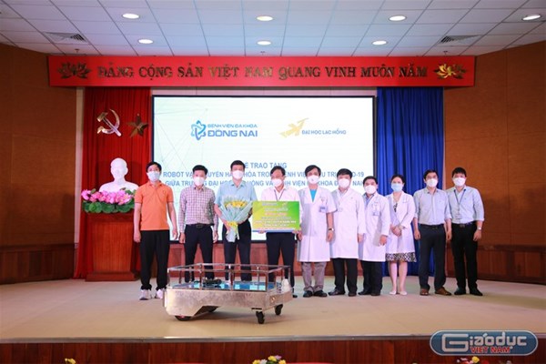 Ngày 19/10, Bệnh viện Đa khoa Đồng Nai đã làm lễ tiếp nhận 1 robot vận chuyển hàng hóa trong khu cách ly do Trường đại học Lạc Hồng trao tặng.