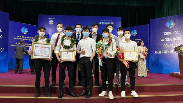 Giải Khuyến Khích:  Tên đề tài " Thiết bị khám và cấp thuốc tự động cho bệnh nhân Covid đang điều trị tại các bệnh viên dã chiến", Nhóm tác giả: Hoàng Ngọc Tân, Phạm Văn Toản, Nguyễn Đình Hải, Phan Văn Tân, Cao Thế Vinh, Lê Minh Hưng