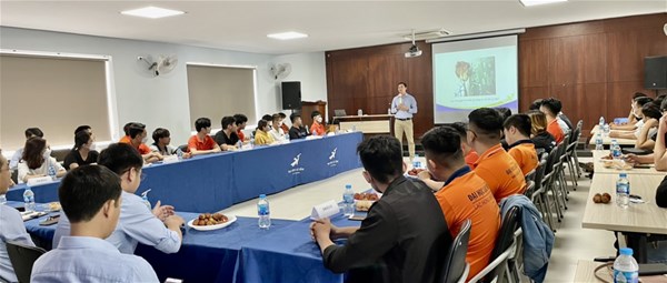 Hình 3: ThS. Lê Hoàng Anh - Phó khoa trao đổi các nội dung tại buổi họp mặt