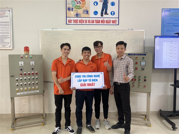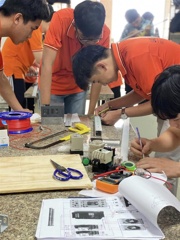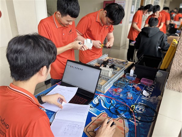• Cùng diễn ra vào ngày 17/12/2022, không khí cuộc thi Lắp tủ điều khiển ứng dụng PLC cũng không kém phần sôi nổi. Với số lượng 30 đội (90 sinh viên) tham gia thi đấu ở Vòng loại, Ban tổ chức đã chọn được 08 đội vào Vòng chung kết thi đấu trong vòng 180 phút.