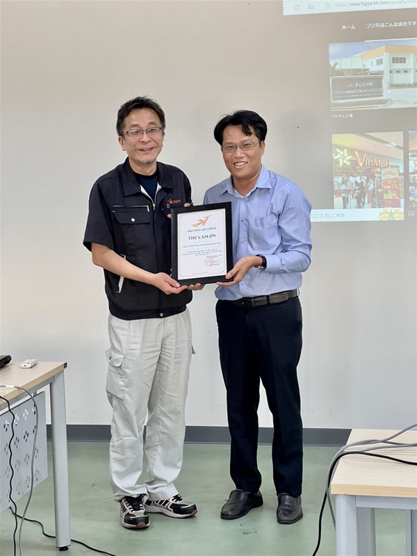 Sáng ngày 21/12/2022, thầy trò Khoa Cơ điện - Điện tử đã có chuyến đi tham quan Công ty TNHH Fujiya Manufacturing Việt Nam. Dẫn đoàn có thầy TS.Phạm Văn Toản - Trưởng khoa là Trưởng đoàn, giáo viên và sinh viên các khóa thuộc các ngành cùng tham dự. Phía đại diện Công ty có Ông Masahiro Sato - Giám đốc Công ty, Ông Onkoshi Yoshimitsu - Giám đốc nhà máy, nhân viên và các Trưởng chuyền sản xuất cùng đón tiếp đoàn.