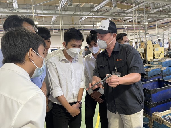 Dưới sự hướng dẫn, giải đáp nhiệt tình của Trưởng chuyền sản xuất và gốc nhìn trực quan các máy, thao tác chuyên nghiệp của nhân công, các bạn sinh viên đã học hỏi rất nhiều công đoạn trong khâu tổ chức, sắp xếp, vận hành của người Nhật trong khâu sản xuất kìm. Các sản phẩm được tạo ra qua rất nhiều công đoạn với sự làm việc tập trung, tỉ mỉ của người nhân công.