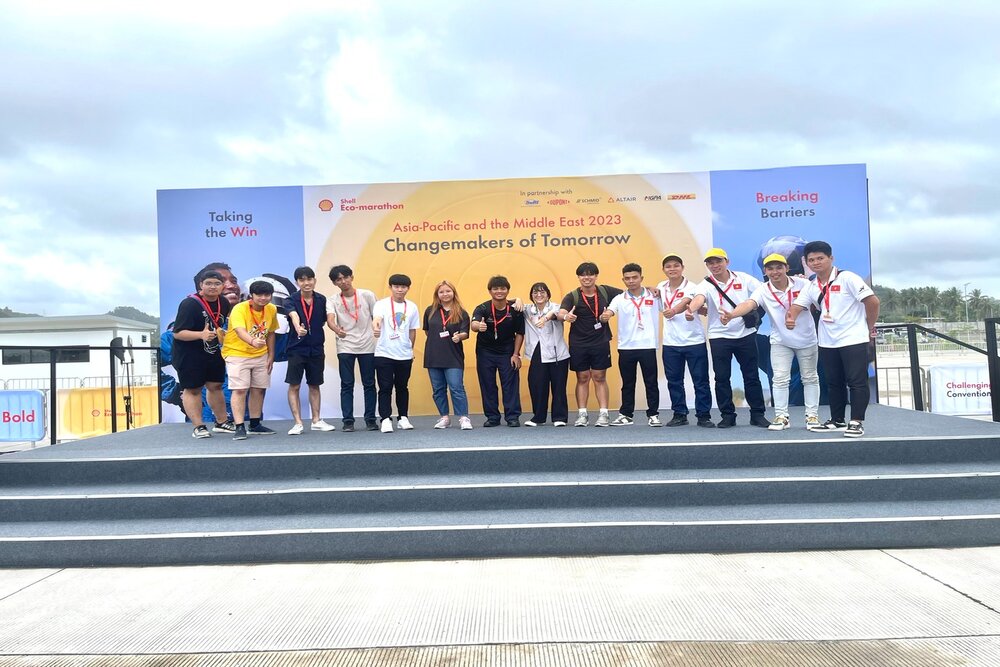 Các thành viên đội LH-EST (5 thành viên bên phải) tại Shell Eco-marathon Asia Pacific and the Middle East năm 2023