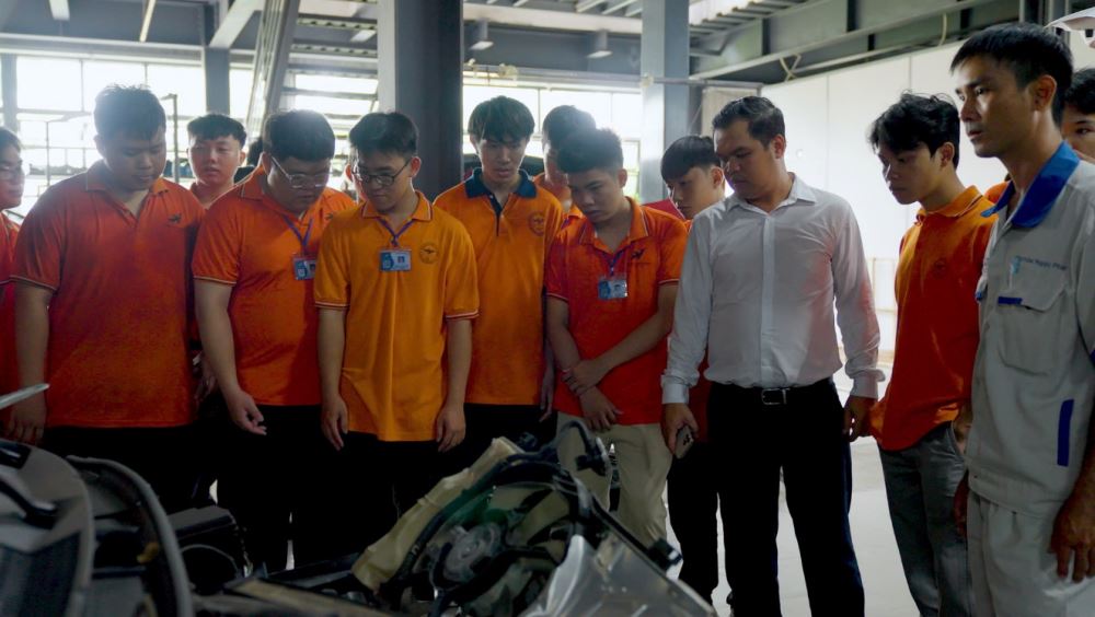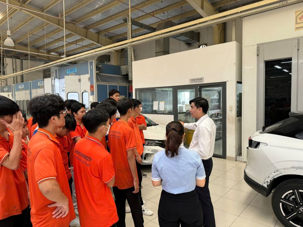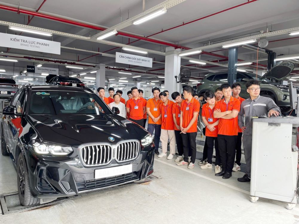 Tại các xưởng dịch vụ, sinh viên được hướng dẫn trực tiếp bởi các chuyên gia kỹ thuật về các quy trình bảo dưỡng và sửa chữa ô tô chuyên nghiệp. Từ kiểm tra tổng thể xe, bảo dưỡng định kỳ, đến sửa chữa chi tiết các bộ phận như động cơ, hệ thống phanh và điện, sinh viên đã có cơ hội trải nghiệm quy trình thực tế và tham gia trực tiếp vào một số hoạt động. Điều này giúp các bạn hiểu rõ hơn về các tiêu chuẩn kỹ thuật và yêu cầu khắt khe trong việc bảo đảm chất lượng và an toàn cho xe sau khi bảo dưỡng.