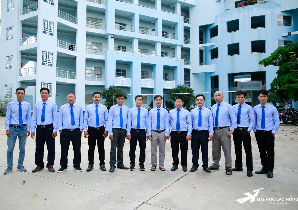 Hình 2: Thầy Lê Tiến Lộc (vị trí thứ 2 từ trái sang) cùng tập thể Bộ môn Khoa Cơ điện - Điện tử