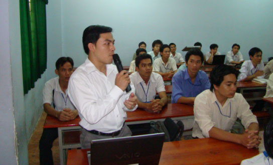 Anh Trần Văn Liễu - Cựu sinh viên khóa 2002 ngành Điện Công Nghiệp - phụ trách phòng thiết kế của công ty TNHH Công Nghiệp Plus Việt Nam tham gia hướng dẫn sinh viên thực hiện đề tài nghiên cứu khoa học