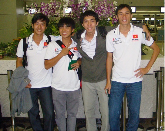 Thầy Lê Hoàng Anh chụp hình lưu niệm với 3/4 sinh viên tham gia thi robocon tại Bangkok - Thái Lan