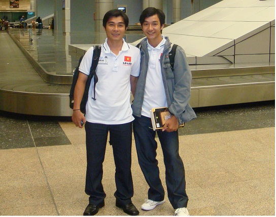 Thầy Lê Thanh Phong (trái) - chỉ đạo viên đội tuyển LED và Sinh viên Hoàng Tuấn Anh - Đội trưởng