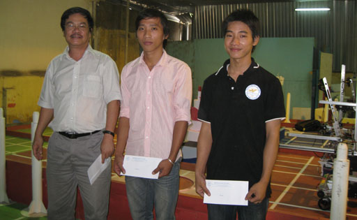 Thầy ThS. Thái Quang Tâm trao bằng khen cho đội giải ba