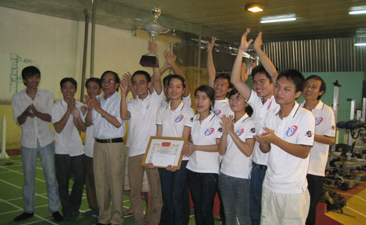 Thầy TS. Trần Hành - Hiệu Trưởng nhà trường trao bằng khen và cúp cho đội vô địch