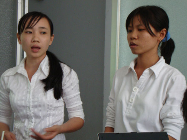 | Các bạn sinh viên trao đổi trước lúc báo cáo |