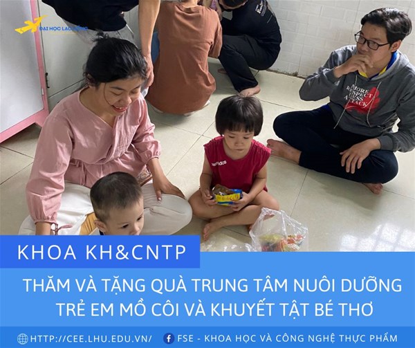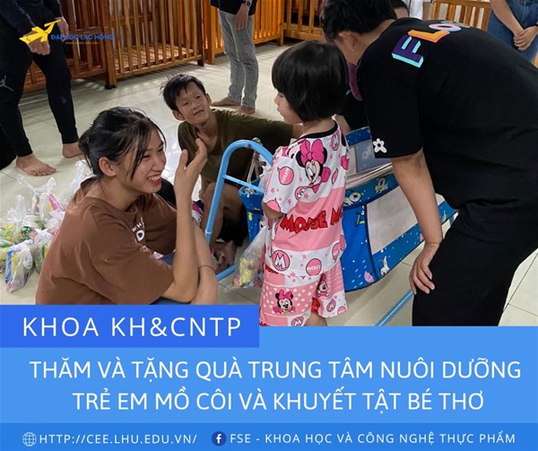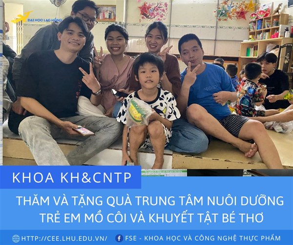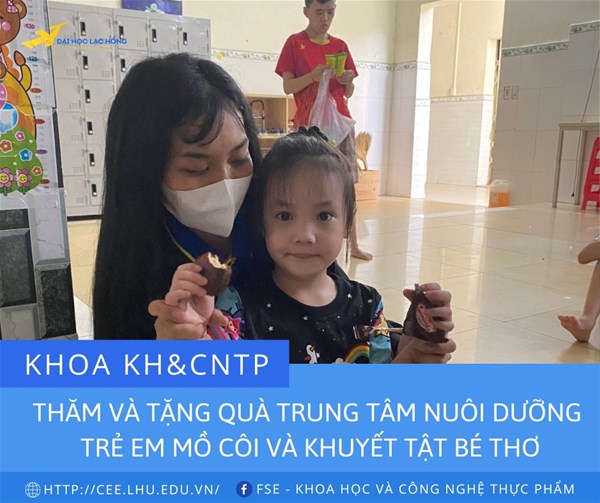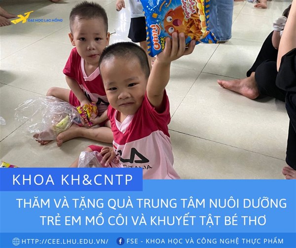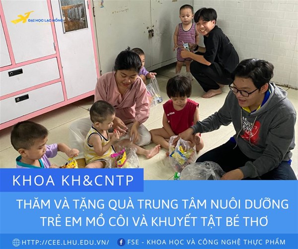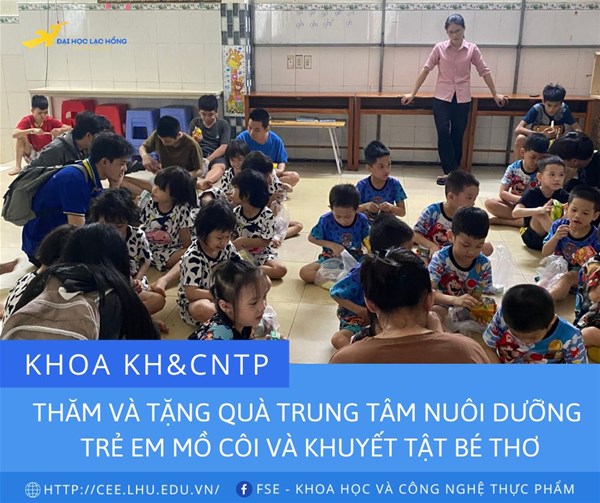 Thực hiện theo kế hoạch năm học 2022-2023 trong chuỗi sự kiện chào mừng kỷ niệm 25 năm thành lập Trường ĐH Lạc Hồng. Chiều ngày 16/9/2022 Khoa Khoa học và Công nghệ thực phẩm tổ chức chuyến thăm và tặng quà tại Trung tâm nuôi dưỡng trẻ em mồ côi và khuyết tật Bé thơ.