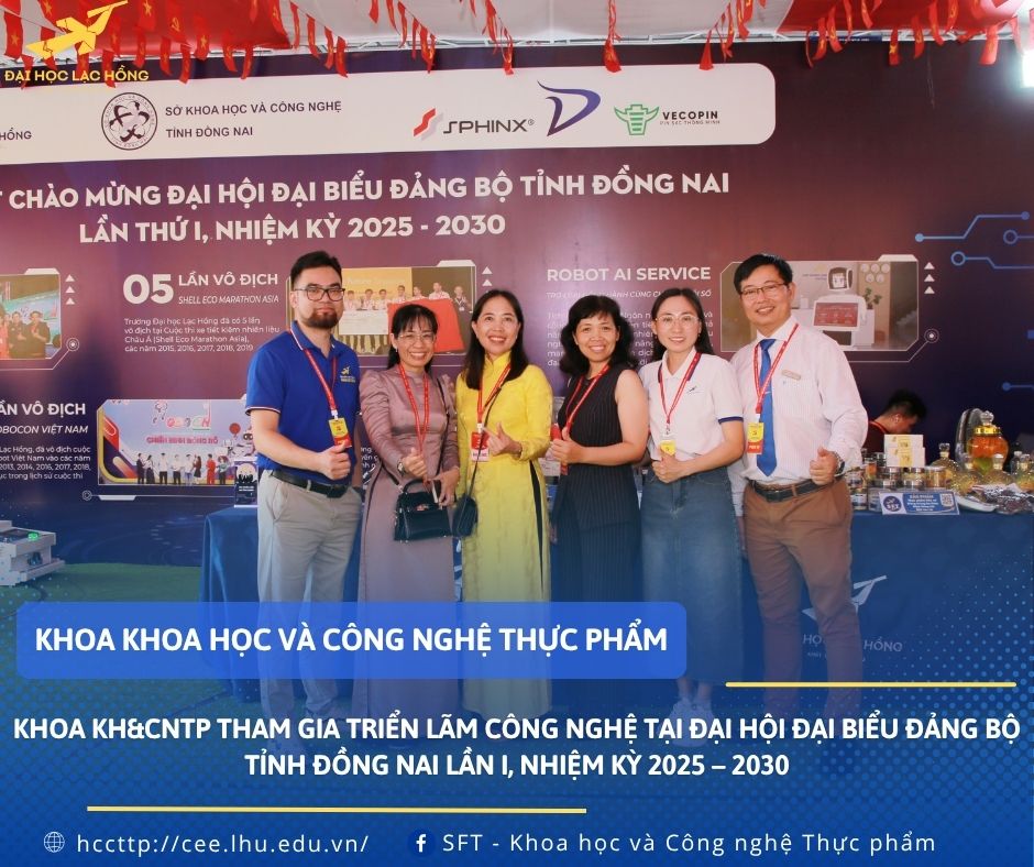 Hòa trong không khí phấn khởi chào mừng Đại hội đại biểu Đảng bộ tỉnh Đồng Nai lần I, nhiệm kỳ 2025 – 2030, Khoa Khoa học và Công nghệ Thực phẩm, Trường Đại học Lạc Hồng đã vinh dự góp mặt tại triển lãm công nghệ với nhiều sản phẩm nghiên cứu đặc trưng, gắn liền với thực tiễn đời sống và nhu cầu xã hội.