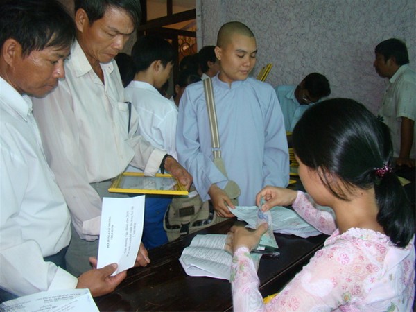 Hình ảnh các phụ huynh học sinh nhận tiền học bổng trực tiếp tại chương trình Giải thưởng Trần Hành (*)
