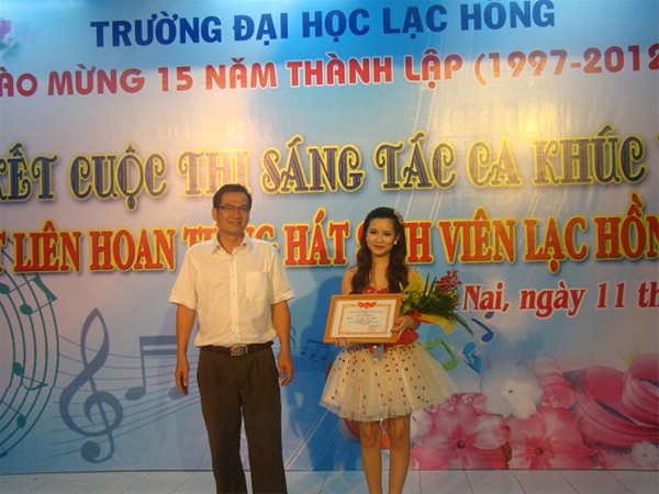 Hình 13: Và niềm vui đã đến với thí sinh Vũ Trần Uyên Phương đã đạt giải nhất thể loại đơn ca Liên hoan Tiếng hát sinh viên Đại học Lạc Hồng lần 10 năm 2012.