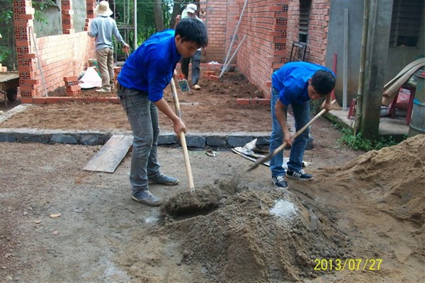 Hình 2: Các bạn sinh viên tình nguyện phụ giúp xây dựng nhà nhân ái