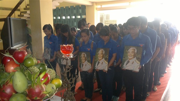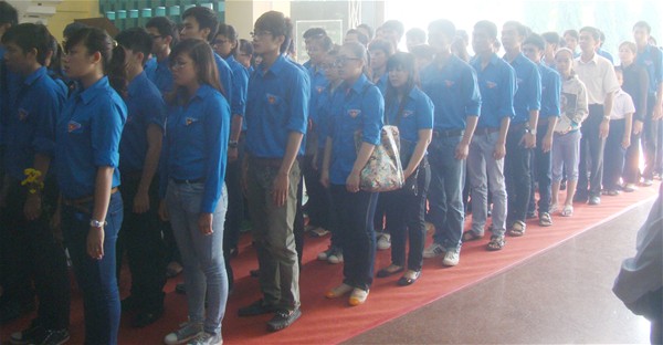 Hình 1: Đoàn viên trường ĐH Lạc Hồng chuẩn bị vào viếng tại lễ truy điệu Đại tướng
