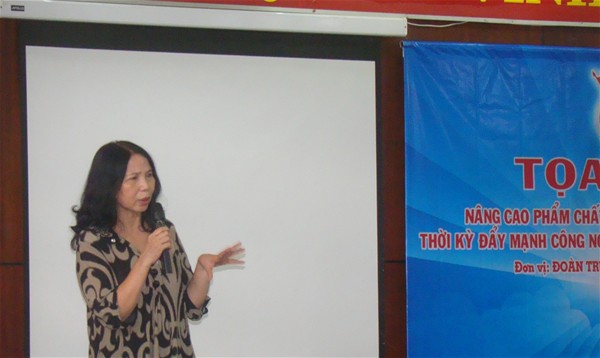 Tại buổi tọa đàm, Báo cáo viên đã trao đổi về giáo dục phẩm chất, đạo đức phụ nữ Việt Nam thời kỳ đẩy mạnh công nghiệp hóa, hiện đại hóa đất nước theo tiêu chí: có lòng yêu nước; có sức khoẻ; có tri thức, kỹ năng nghề nghiệp; năng động, sáng tạo; có lối sống văn hoá và lòng nhân hậu nhằm nâng cao nhận thức, chuyển đổi hành vi của người dân, cộng đồng, xã hội, đặc biệt là phụ nữ trong việc giữ gìn, phát huy và xây dựng phẩm chất, đạo đức tốt đẹp của con người Việt Nam đáp ứng yêu cầu của thời kỳ đẩy mạnh công nghiệp hóa, hiện đại hoá đất nước.