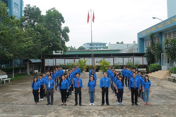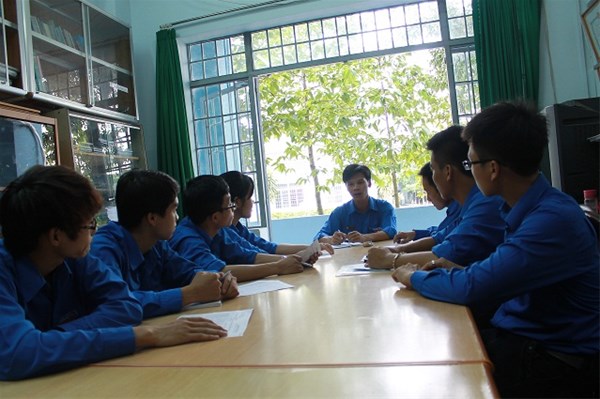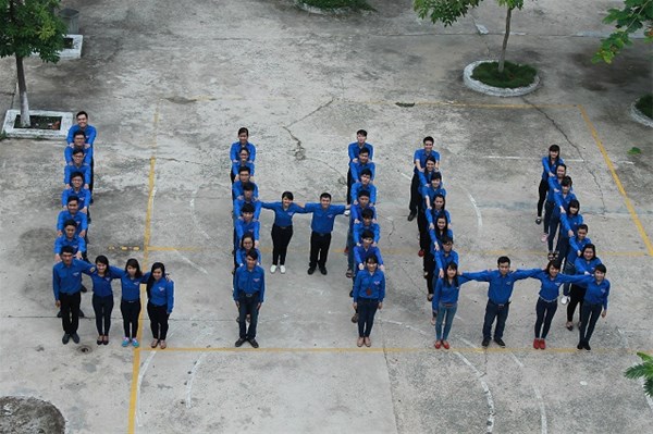 Hình 1- đ/c Lê Sơn Quang - Bí thư Đoàn trường (thứ 4 từ bên phải qua); đ/c Trần Tiến - Phó Bí thư, Chủ tịch Hội sinh viên trường (thứ 6 từ bên phải qua)