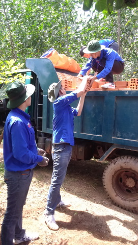 Hình 2: Sinh viên tình nguyện chuẩn bị vận chuyển gạch xây nhà
