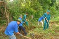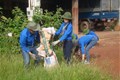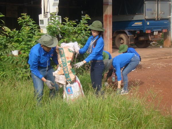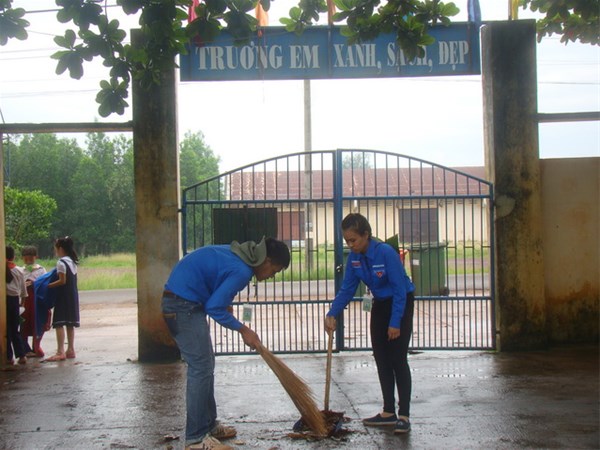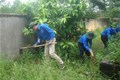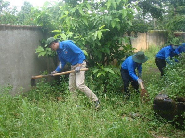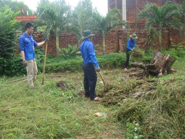 Hình 1: Cùng thanh niên địa phương dọn vệ sinh môi trường xanh, sạch đẹp