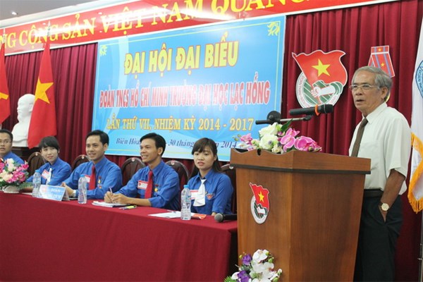 Đến dự và chỉ đạo đại hội, Đ/c Nguyễn Cao Cường – Phó Bí thư thường trực Tỉnh đoàn Đồng Nai cũng đã tuyên dương các thành tích mà ban chấp hành Đoàn trường nhiệm kỳ cũ đã làm được; đồng thời mong muốn các đ/c trong Ban chấp hành mới tiếp tục phát huy hơn nữa các thành tích mà tập thể BCH trước đã làm được; về phía Đảng ủy nhà trường, Đ/c Nguyễn Trùng Phương – Bí thư Đảng ủy nhà trường đã không quên nhắc lại những sự hy sinh của các thế hệ cha anh đi trước để tuổi trẻ của các bạn ngày hôm nay có được một cuộc sống hòa bình, có nhiều cơ hội để học tập, trao dồi kiến thức, tự do sáng tạo. Đ/c mong rằng các bạn Đoàn viên, sinh viên hãy tiếp tục nối bước các thế hệ cha anh thường xuyên trao dồi lý tưởng cách mạng, bằng những hành động cụ thể trong học tập, lao động sáng tạo để  góp phần xây dựng đất nước ngày càng phồn vinh, giàu đẹp.