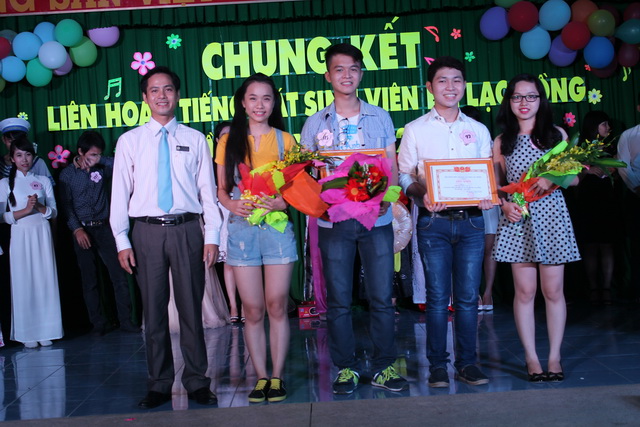 Hình 3: Đ/c Lê Sơn Quang - Bí thư Đoàn trường trao giải nhì thể loại song ca