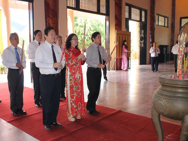 Hình 1: NGND. TS. Đỗ Hữu Tài, đồng Chủ tế Lễ tết thầy cùng lãnh đạo Tỉnh ủy, UBND tỉnh, Sở Giáo dục & Đào tạo tỉnh