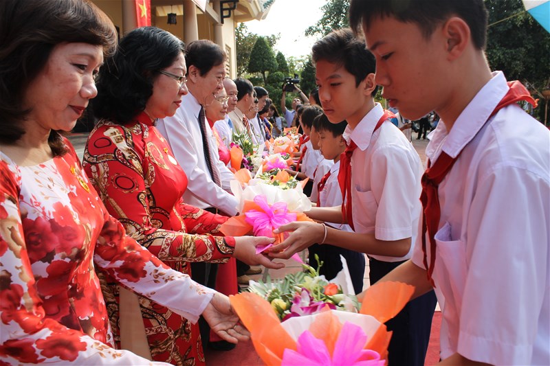 Hình 2: Các bạn học sinh, sinh viên dâng lên những đóa hoa thể hiện sự biết ơn đối với thầy, cô giáo