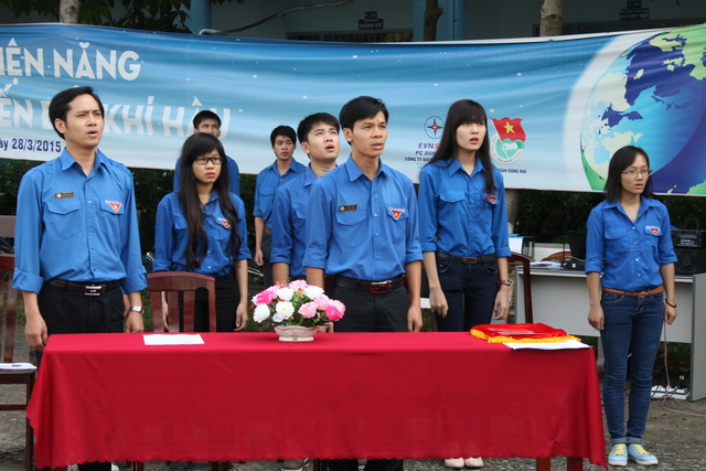 Hình 1: Các đại biểu chào cờ tại lễ kết nạp đoàn viên