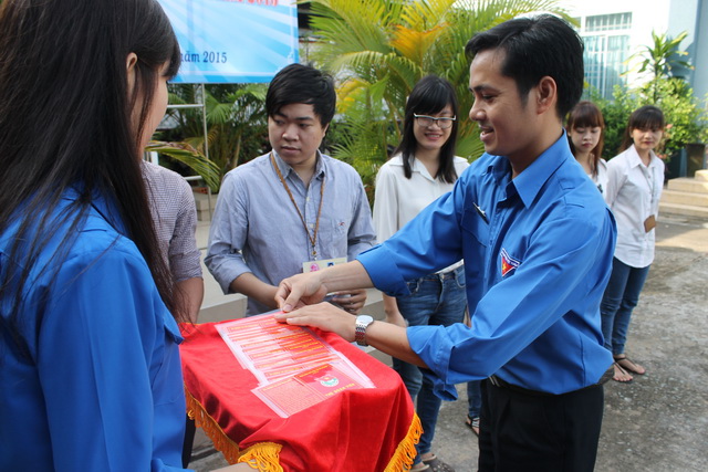Hình 2: Đ/c Lê Sơn Quang - Bí thư Đoàn trường trao thẻ đoàn cho đoàn viên