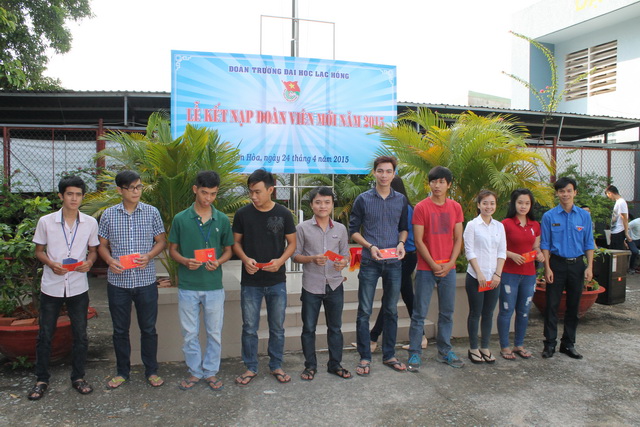 Sau khi đã hoàn thành xong các chủ đề bắt buộc trong chương trình bồi dưỡng dành cho các bạn sinh viên chưa là Đoàn viên. Sáng ngày 24/4/2015, Đoàn trường Đại học Lạc Hồng đã tổ chức Lễ kết nạp Đoàn viên cho gần 100 sinh viên ưu tú đã đủ điều kiện được kết nạp vào Đoàn TNCS Hồ Chí Minh.
