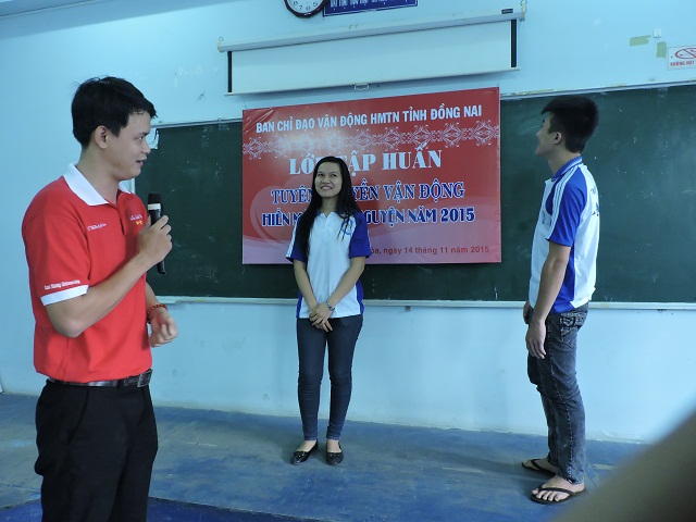 Chương trình tập huấn được lồng ghép các hoạt động trao đổi, chia sẻ kinh nghiệm vận động hiến máu tình nguyện, sân khấu hóa. Bà Nguyễn Thị Ánh – Thường trực ban chỉ đạo HMTN tỉnh Đồng Nai phát biểu tại lớp tập huấn cho biết: "Qua lớp tập huấn, tôi hi vọng rằng sẽ cung cấp cho các học viên những thông tin, kiến thức chuyên sâu về hiến máu tình nguyện. Kết thúc lớp học, tôi mong rằng các bạn sinh viên sẽ triển khai các nội dung tập huấn lại cho nhiều người hơn nữa để kiến thức về hiến máu được truyền tải sâu rộng đến nhiều đối tượng và ngày càng có nhiều cá nhân tích cực trong các hoạt động hiến máu cứu người”.