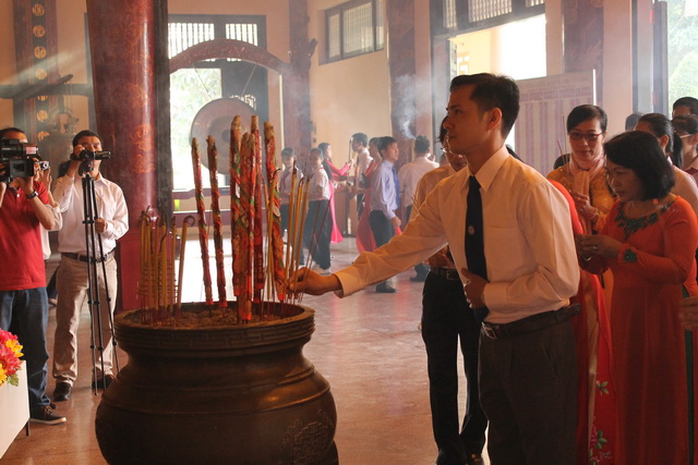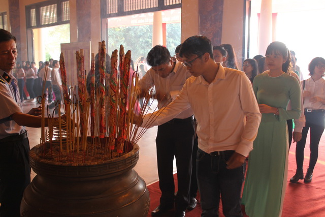 Hình 3: Đoàn vào nhà bái đường thắp hương tưởng niệm các bậc tiền nhân