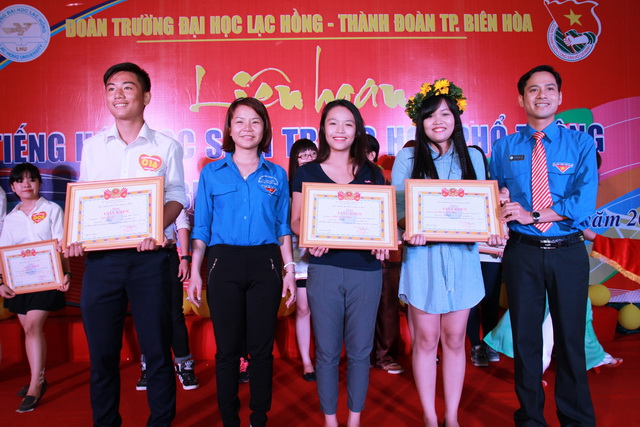 Hình 4: Đại diện 2 đơn vị Đoàn Thanh niên TP. Biên Hòa và Đoàn trường ĐH Lạc Hồng trao các giải thưởng cho cuộc thi