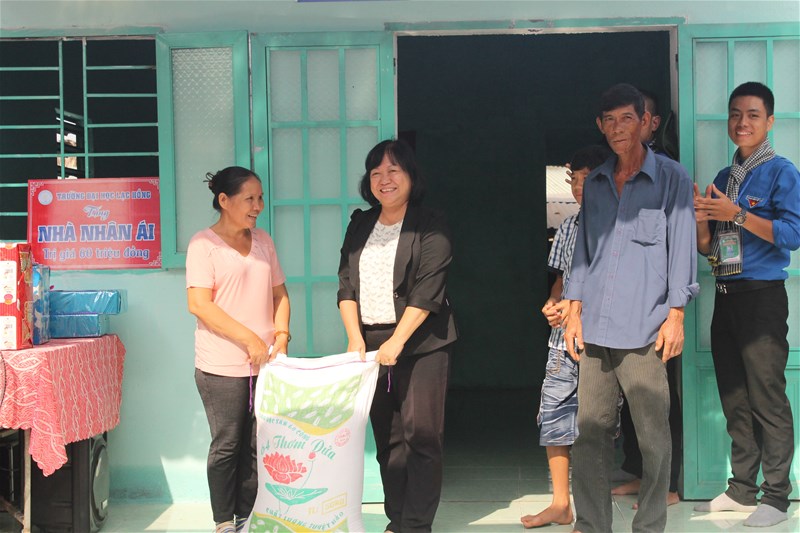 Hình 3: Đại diện trường Đại học Lạc Hồng trao nhà