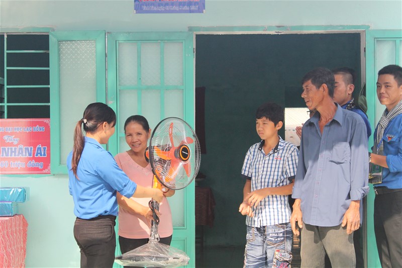 Sau hơn 2 tuần khởi công xây dựng “Ngôi nhà Nhân Ái” trong chiến dịch Mùa hè xanh 2016. Trường Đại học Lạc Hồng, UBND xã Vĩnh Tân, Đội Mùa hè xanh đã tiến hành bàn giao cho gia đình bà Đỗ Thị Nở - Ông Xì A Sáng. Ngôi nhà với nguồn kinh phí được vận động từ thầy, cô, cùng các bạn sinh viên, Chi hội từ thiện trường ĐH Lạc Hồng…Ngôi nhà Nhân Ái có diện tích xây dựng 50mvới tổng kinh phí là 60 triệu đồng.