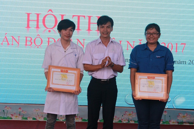 Hình 3- Đ/c Trần Tiến - Phó Bí thư; Chủ tịch Hội sinh viên trao giải Ba cho Khoa dược và Khoa Kỹ thuật Hóa học - Môi trường