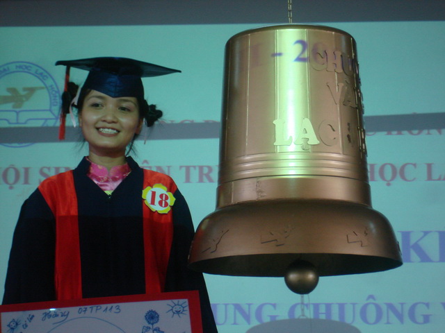 Hình 12: Sinh viên Trần Thị Hằng rạng rỡ bên cạnh chuông vàng