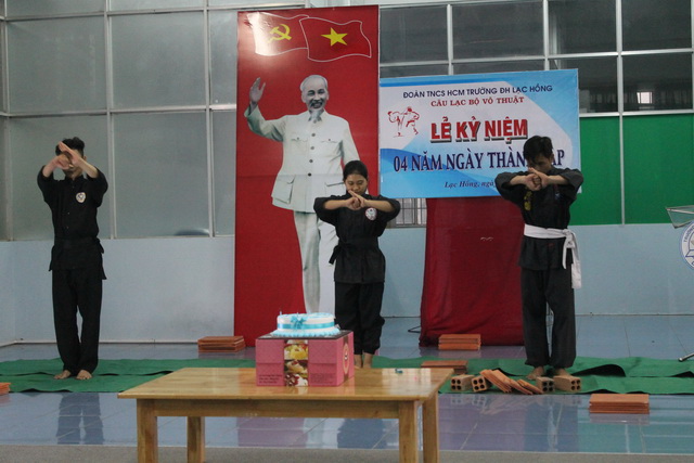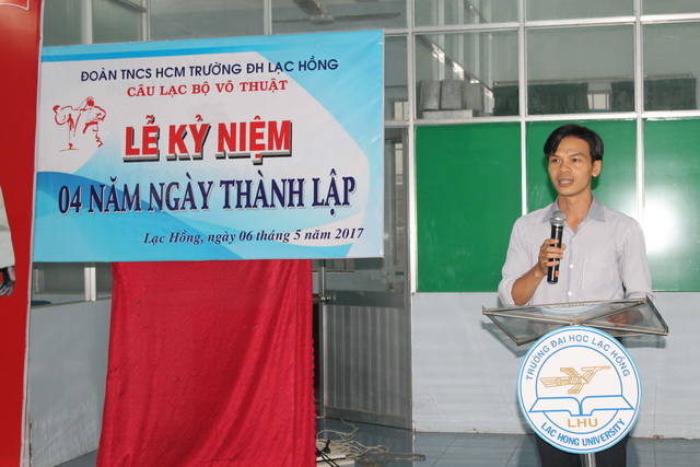 Để ghi nhận những kết quả đạt được cùng với các sự kiện diễn ra trong thời gian hoạt động của Câu lạc bộ, ngày 06 tháng 5 năm 2017, tại cơ sở 3 của trường; Câu lạc bộ võ thuật trường Đại học Lạc Hồng đã tổ chức buổi lễ kỷ niệm 04 năm thành lập. Tham dự buổi lễ có đồng chí Trần Tiến – Phó Bí thư thường trực Đoàn trường, Chủ tịch Hội Sinh viên trường, đồng chí Đặng Đại Hùng – Phó Bí thư Đàon trường, Phó Chủ tịch Hội Sinh viên trường, đồng chí Võ Ngọc Vinh – UV. BCH Đoàn trường, nguyên Chủ nhiệm Câu lạc bộ võ thuật trường Đại học Lạc Hồng. Đặc biệt buổi lễ còn đón nhận sự có mặt của võ sư Mã Thanh Tánh, là huấn luyện viên hỗ trợ chuyên môn cho câu lạc bộ, cùng với toàn thể các bạn sinh viên là thành viên trong câu lạc bộ võ thuật.