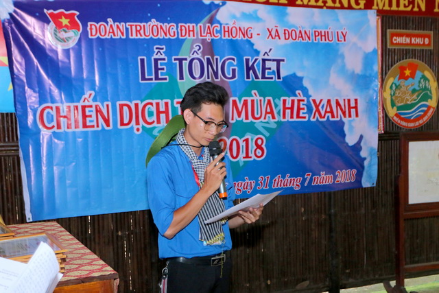 Tại buổi Lễ tổng kết, Đ/c Kheo Thành Linh – Đội trưởng Đội TNTN Mùa hè xanh trường Đại học Lạc Hồng đã báo cáo các nội dung đã thực hiện trong hơn 2 tuần công tác của các bạn sinh viên tình nguyện tại xã Phú Lý, huyện Vĩnh cửu.