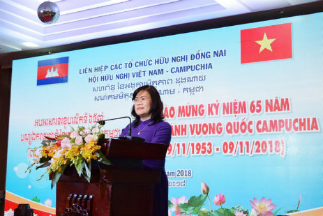 Sáng 07/11/2018, tại nhà hàng Golden Lotus, đã diễn ra Lễ kỷ niệm 65 năm Quốc khánh Vương quốc Campuchia do Liên hiệp các tổ chức hữu nghị tỉnh Đồng Nai tổ chức. Tham dự lễ có ông Im Hen, Tổng lãnh sự Campuchia tại TP. Hồ Chí Minh, bà Nguyễn Hòa Hiệp, Phó Chủ tịch UBND tỉnh.