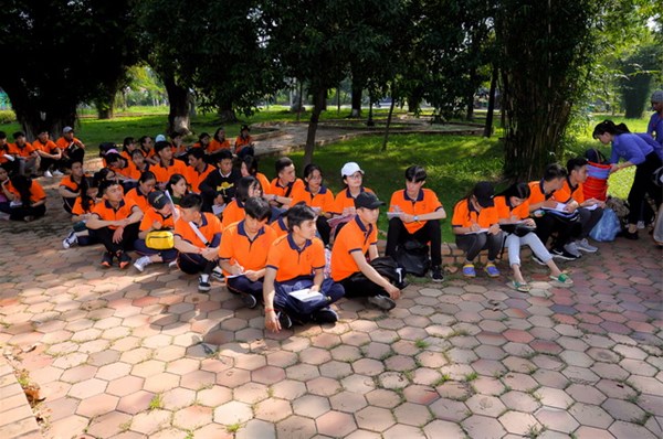 Hình 1: Sinh viên tập trung nghe Hướng dẫn viên thuyết minh về lịch sử Văn miếu Trấn Biên