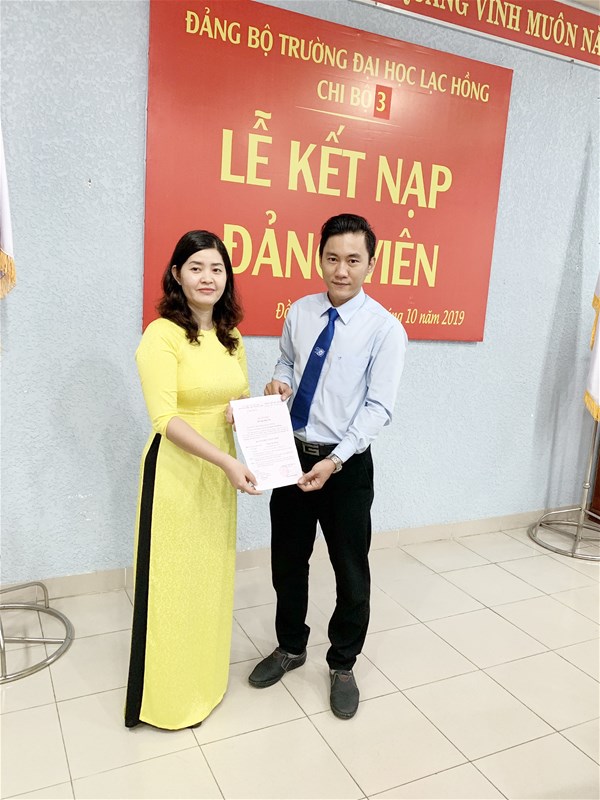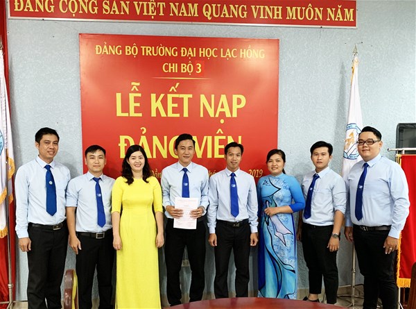 Được sự thống nhất của Ban thường vụ Đảng ủy khối, Đảng ủy trường đại học Lạc Hồng, Sáng ngày 03/10/2019 tại phòng họp cơ sở 1, Chi bộ 3 đã tiến hành tổ chức lễ kết nạp Đảng viên cho quần chúng xuất sắc Nguyễn Văn Nhường vào Đảng Cộng sản Việt Nam; Đến dự buổi lễ kết nạp có Đ/c Nguyễn Hồ Xuân Hương – Bí thư Chi bộ 3, cùng toàn thể Đảng viên trong Chi bộ.