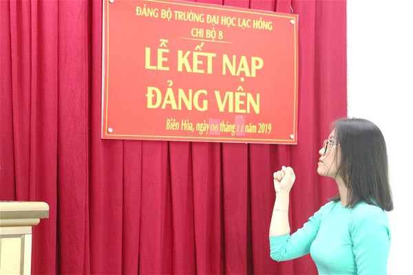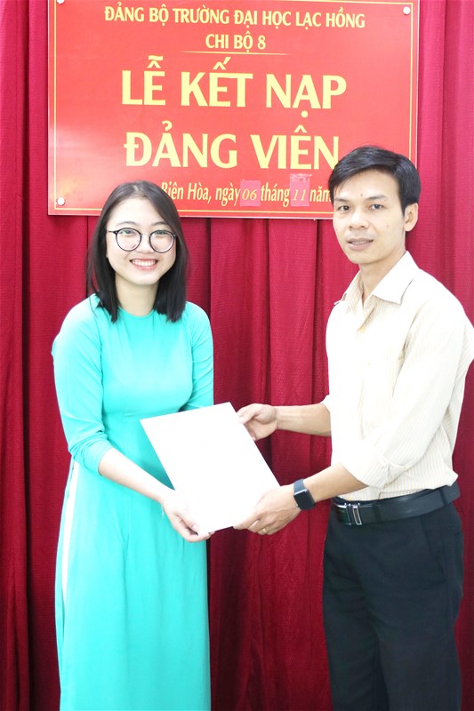 Được sự đồng ý của Đảng ủy khối các cơ quan tỉnh Đồng Nai, Ban Thường vụ Đảng ủy trường; Sáng ngày 06/11/2019 tại văn phòng Đảng ủy cơ sở 3, Chi bộ 8 đã tổ chức Lễ kết nạp đảng viên cho quần chúng Nguyễn Đặng Tường Vy – Khoa Dược vào Đảng Cộng sản Việt Nam, đến dự buổi lễ kết nạp có Đ/c Lê Sơn Quang – UV.BTV Đảng ủy trường, Đ/c Trần Tiến – Bí thư Chi bộ 8 cùng sự có mặt của toàn thể đảng viên trong Chi bộ 8.